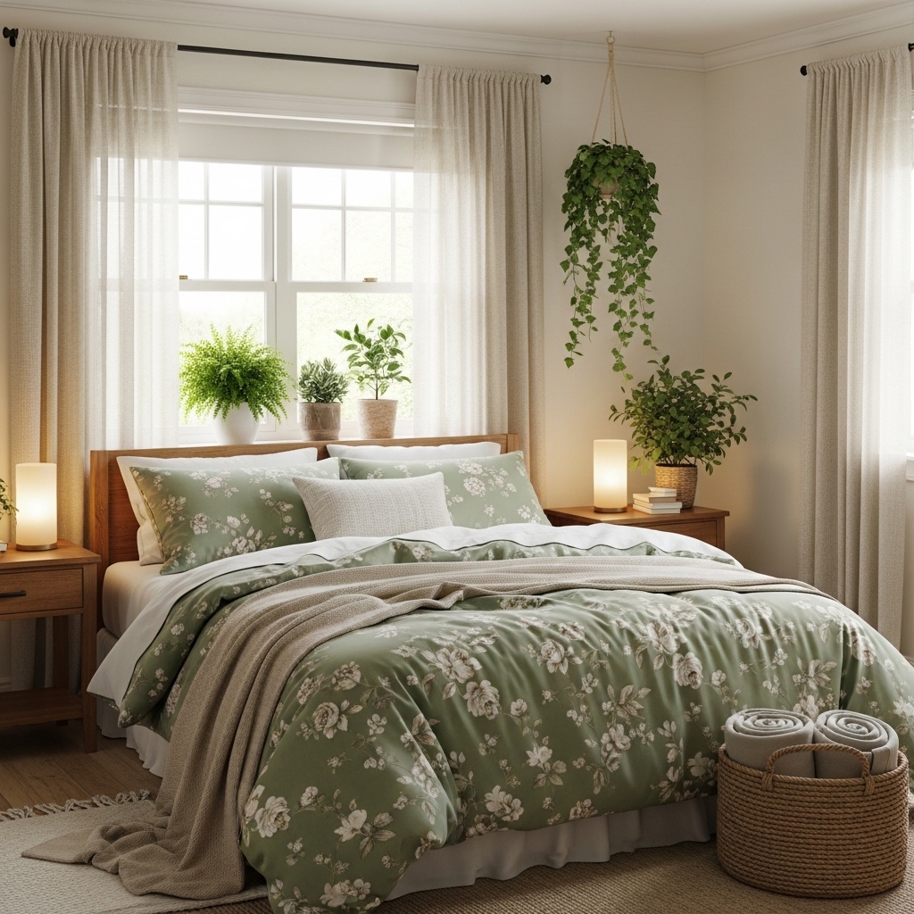 Choose sage green floral bedding.