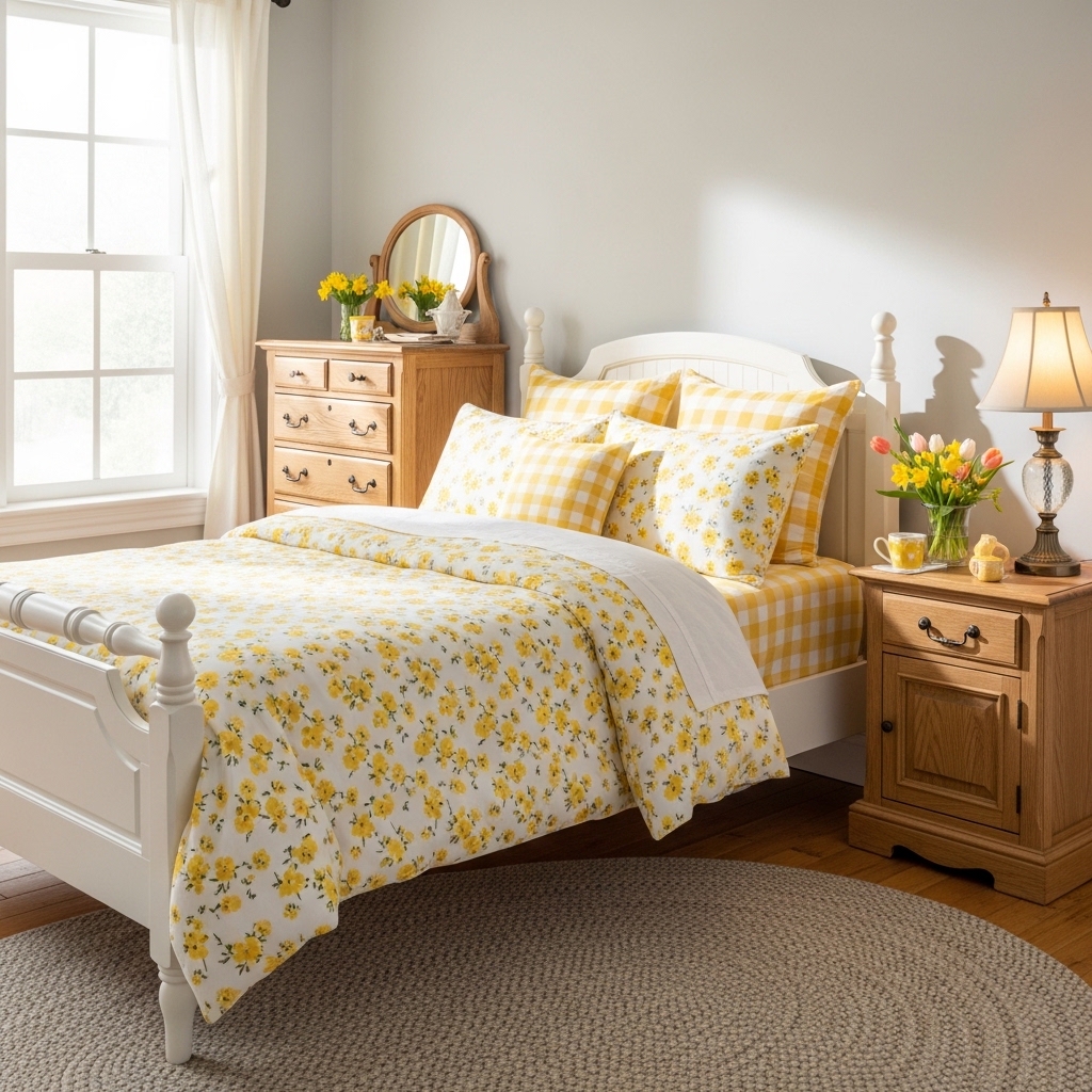 Yellow florals create a cheerful, uplifting effect.